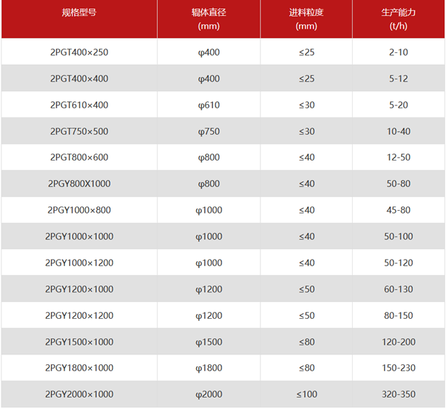 鵝卵石對輥破碎機規(guī)格型號如下: