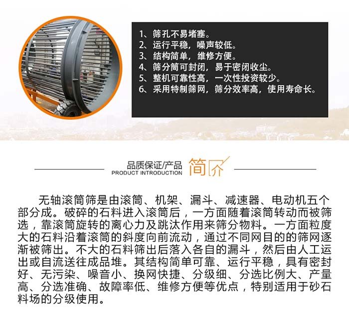 無軸滾筒篩性能特點: