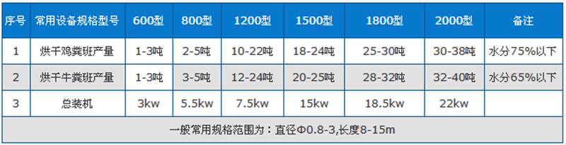 牛糞烘干機(jī)技術(shù)參數(shù)