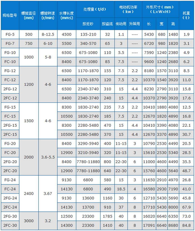 螺旋分級(jí)機(jī)技術(shù)參數(shù)