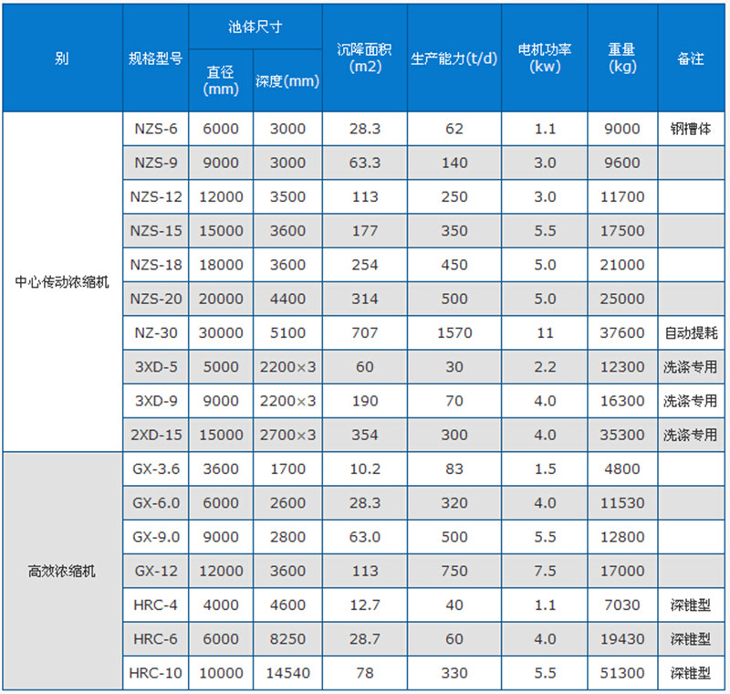 濃縮機(jī)(高效濃縮機(jī))一般主要由濃縮池、粑架、傳動裝置、粑架提升裝置、給料裝置、卸料裝置和信號安全裝置等組成。